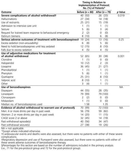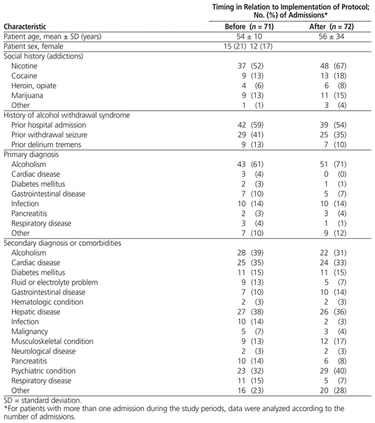 Evaluation Of An Alcohol Withdrawal Protocol And A Preprinted Order Set At A Tertiary Care Hospital Ng The Canadian Journal Of Hospital Pharmacy