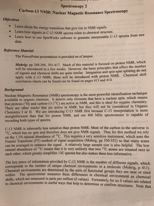 Solved Spectroscopy 2 Carbon 13 Nmr Nuclear Magnetic Res