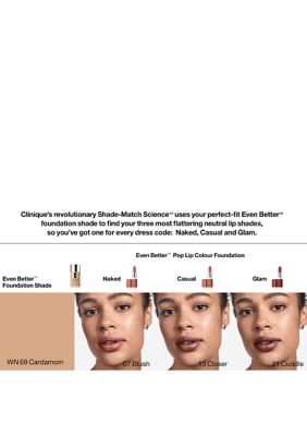 Clinique uses the following descriptions in all foundation shade names. Clinique foundations are powered by skin care. Start with the foundation you currently use to find a matching shade from this brand.