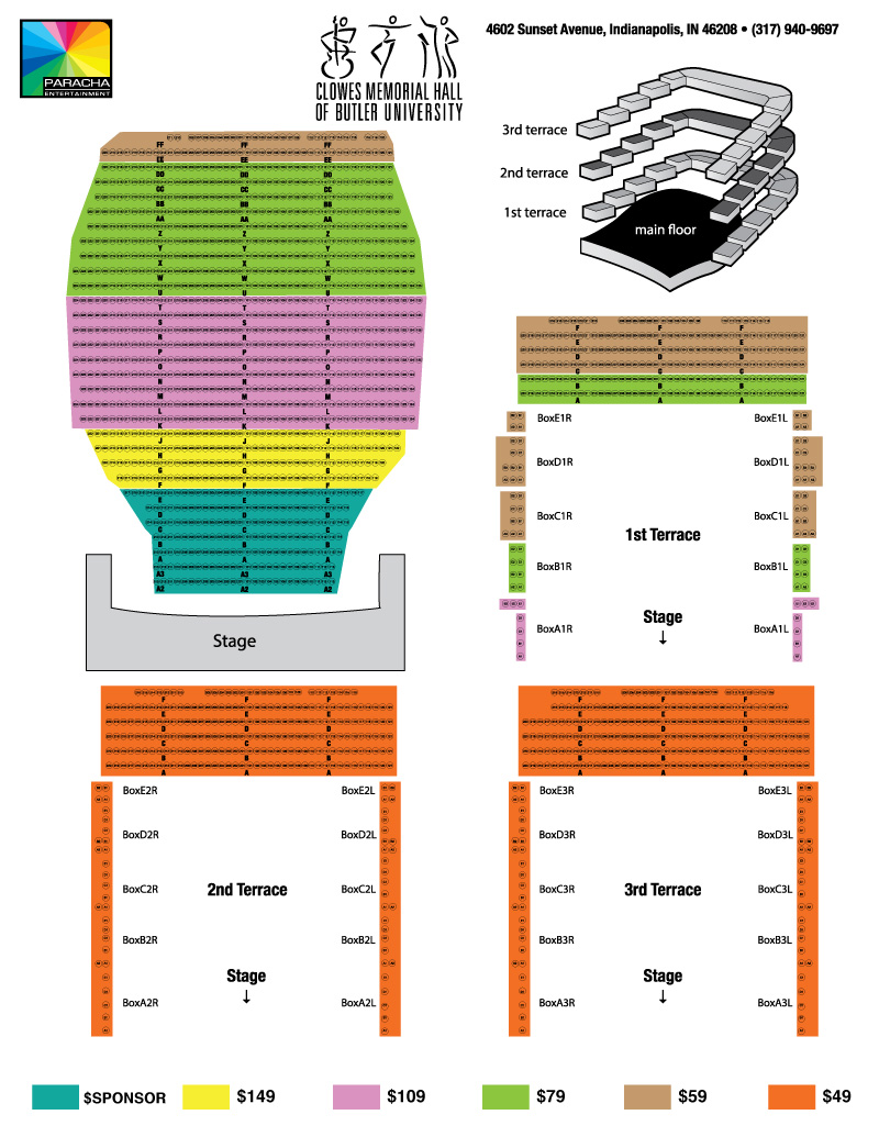Clowes Memorial Hall Indianapolis In Seating Chart Stage