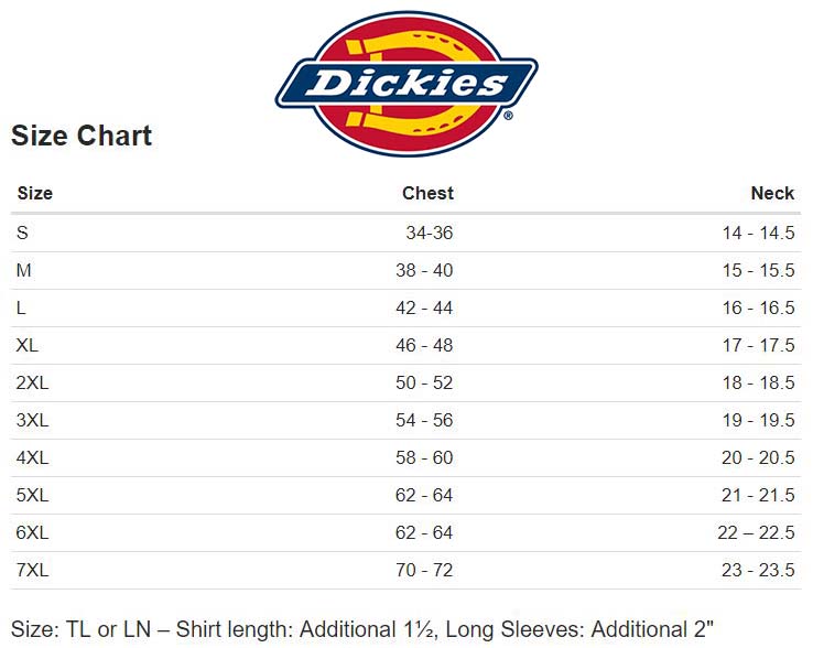 Dickies Unisex Size Chart Fashion Scrub Depot