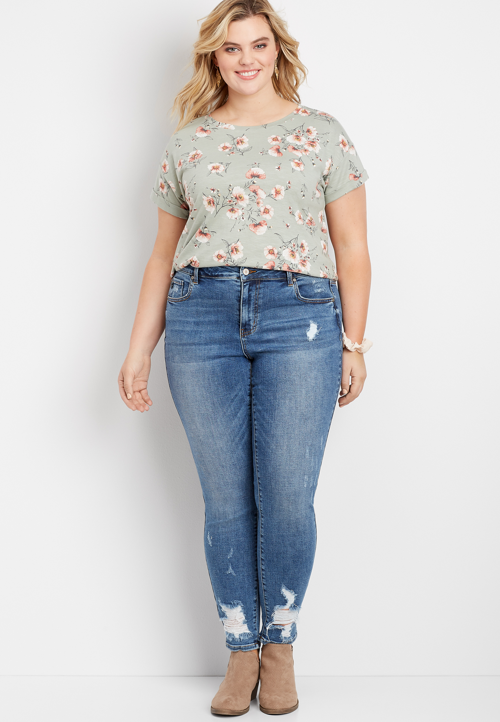 Plus Size Kancan Medium Wash Destroyed Skinny Jeans Maurices