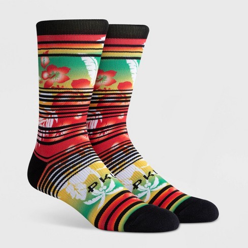 Pkwy Men S Striped Floral Print Jah Lei Crew Socks Red L Target