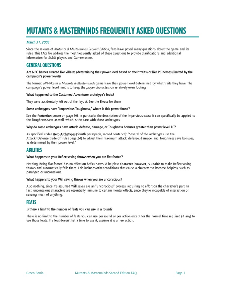 Mutants Masterminds Faq 2nd Ed Role Playing Games Role