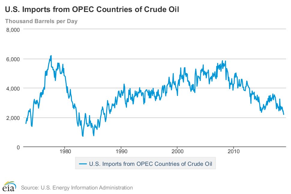 Monthly U S Crude Oil Imports From Opec Fall To A 30 Year Low